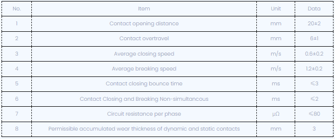 หลังจากปรับเบรกเกอร์วงจรพารามิเตอร์ลักษณะเชิงกลจะแสดงด้านล่าง: