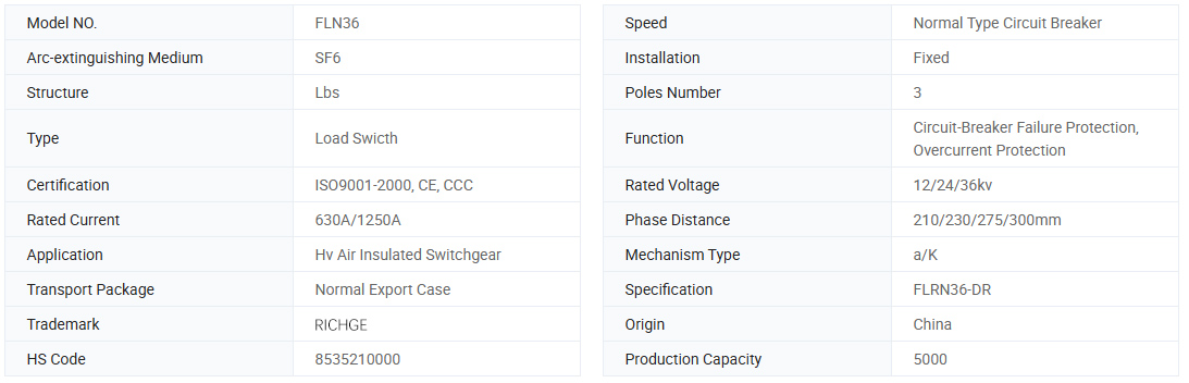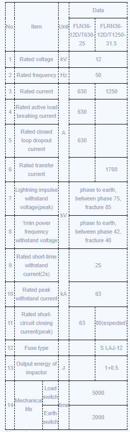 FLN36-12D/T630-20 สวิตช์โหลดใช้แก๊ส SF6 เป็นฉนวนและสื่อการดับ ARC; มีสามตำแหน่ง: การปิดการเปิดและการต่อสายดิน; ผู้ติดต่อแบบไดนามิกและแบบคงที่มีการแยกสองครั้งความน่าเชื่อถือที่สูงขึ้น อายุการใช้งานไฟฟ้าขยาย (ระดับ E3, จัดอันดับกระแส 100 ครั้ง); ขยายชีวิตเชิงกล (ระดับ M2, 5,000 ครั้ง); จัดอันดับความเสถียรทางความร้อนในปัจจุบัน (4S) 20ka; การปิดและเปิดตำแหน่งคือการทำงานด้วยไฟฟ้าหรือด้วยตนเองและตำแหน่งการต่อสายดินเป็นการดำเนินการด้วยตนเอง แหล่งจ่ายไฟการดำเนินงานไฟฟ้ามีอยู่ใน AC220V, AC110V, DC220V DC110V, DC48V, DC24V; มีการเชื่อมต่อไฟฟ้าและการทำงานด้วยตนเองและฟังก์ชั่นการป้องกันการเชื่อมต่อแบบย้อนกลับของแหล่งจ่ายไฟ