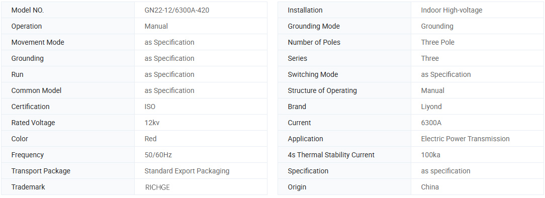 สวิตช์เกียร์แรงดันสูงแบบตัดการเชื่อมต่อไฟฟ้าแรงสูงในร่มรุ่น GN22-12 (C) (D) ใช้ในระบบไฟฟ้าที่มีแรงดันไฟฟ้าพิกัด 12kV, 50Hz และต่ำกว่า เพื่อเชื่อมต่อ ถอดหรือแปลงสายภายใต้แรงดันไฟฟ้า แต่ไม่มีโหลด