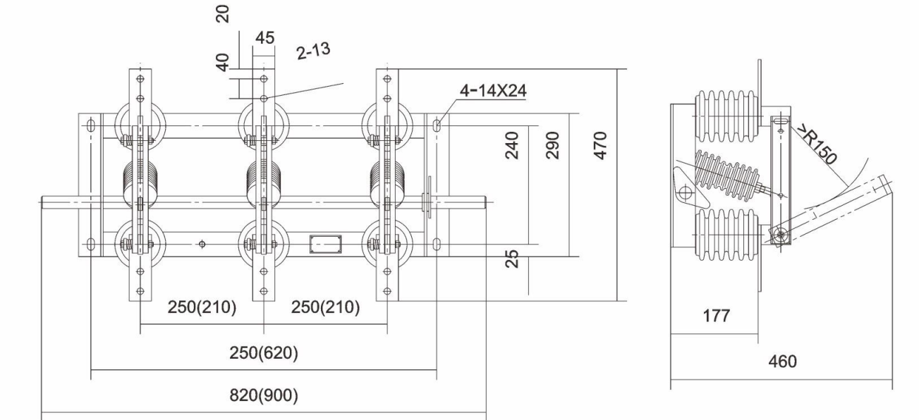 2:ข้อจำกัดในการใช้งาน - สวิตช์แยกไม่สามารถทำงานได้ภายใต้โหลด ไม่ควรใช้ตัดหรือปิดกระแสโหลดหรือกระแสลัดวงจร สวิตช์แยกที่ติดตั้งห้องดับเพลิงแบบอาร์คสามารถทำงานภายใต้โหลดขนาดเล็กและท่อที่ไม่โหลด