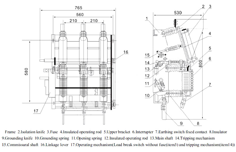 FZN21-12 ซีรีส์สวิตช์โหลดสูญญากาศแรงดันสูงส่วนใหญ่ประกอบด้วยเฟรมเมอร์สวิตช์ตัดการเชื่อมต่อ (ฟิวส์ จำกัด ปัจจุบันของ combiner อยู่ในสวิตช์ตัดการเชื่อมต่อ), หลอดสวิตช์สูญญากาศ, สวิตช์สายดิน, กลไกการทำงานของสปริงและอื่น ๆ