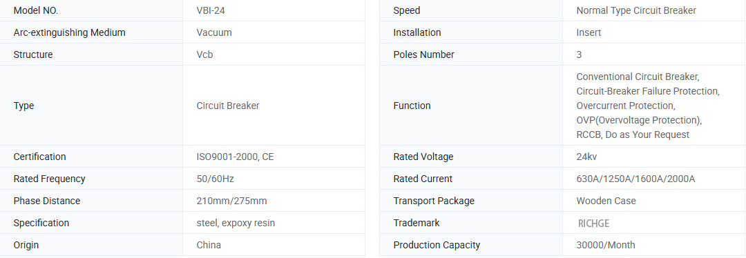 VBI-24 ซีรีส์ของเบรกเกอร์สูญญากาศแรงดันไฟฟ้าสูงในร่มที่มีเสาฝังอยู่เป็นสามวลี A.C.50 Hz อุปกรณ์การกระจายพลังงานในร่มพร้อมแรงดันไฟฟ้าที่ได้รับการจัดอันดับ 24 kV ที่ใช้ในการปกป้องและควบคุมอุปกรณ์ไฟฟ้าในสาขาอุตสาหกรรม
