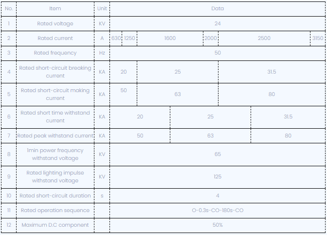 ♦ DL/T402 ข้อมูลจำเพาะของเบรกเกอร์วงจร AC แรงดันสูง