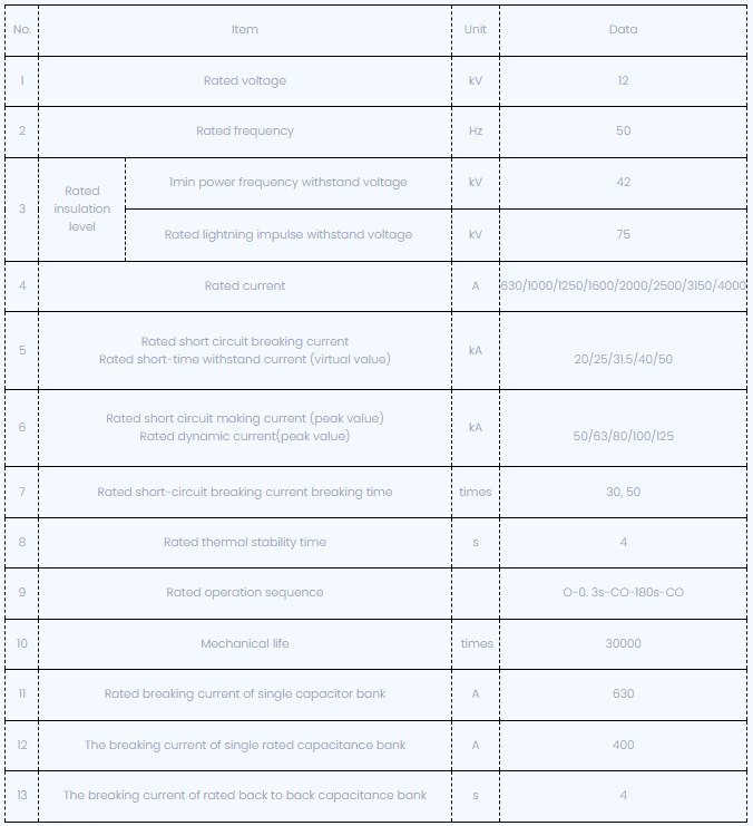 พารามิเตอร์ VSG-12 Handcart ประเภท Vacuum Circuit Breaker Parameter