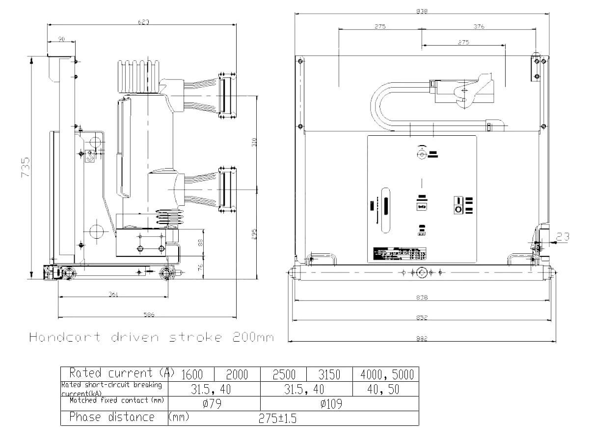 VSM-12 Handcart Handcart ประเภทกลไก Magnet Magnet Vacuum Circuit Breaker